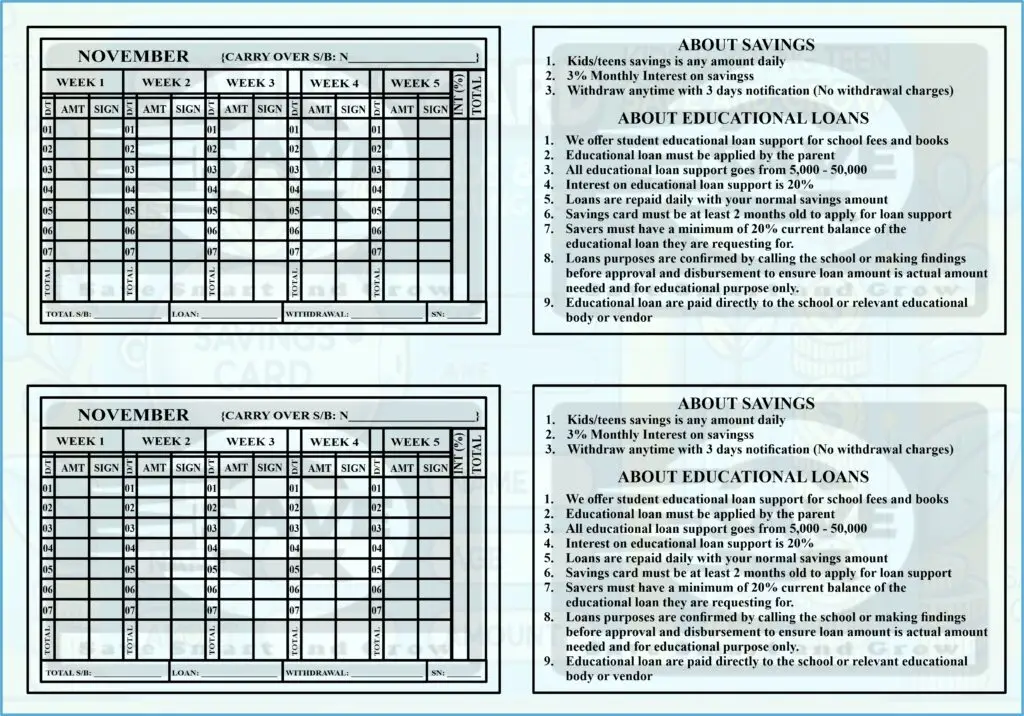 FREE CHILDREN SAVINGS CARD SAMPLE